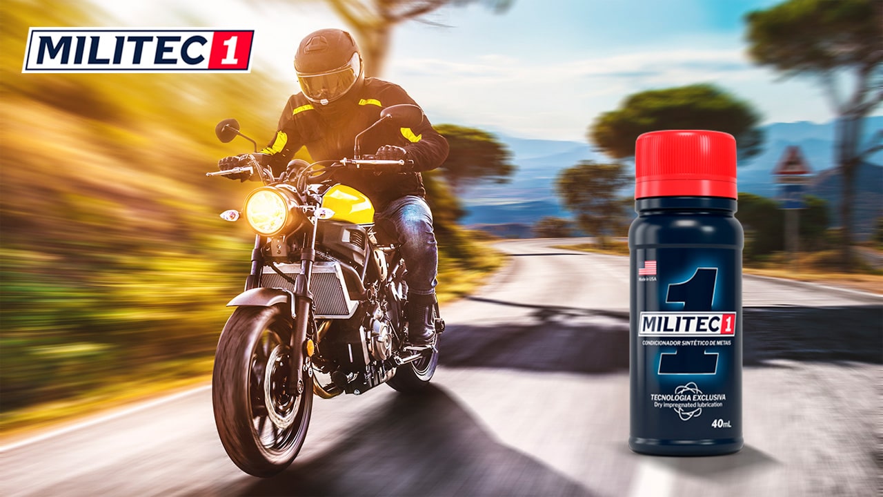 MOTOCICLETA: A MILITEC Brasil criou o frasco exclusivo de 40 ml, que é a dose ideal para motocicletas com até 1 litro de óleo.