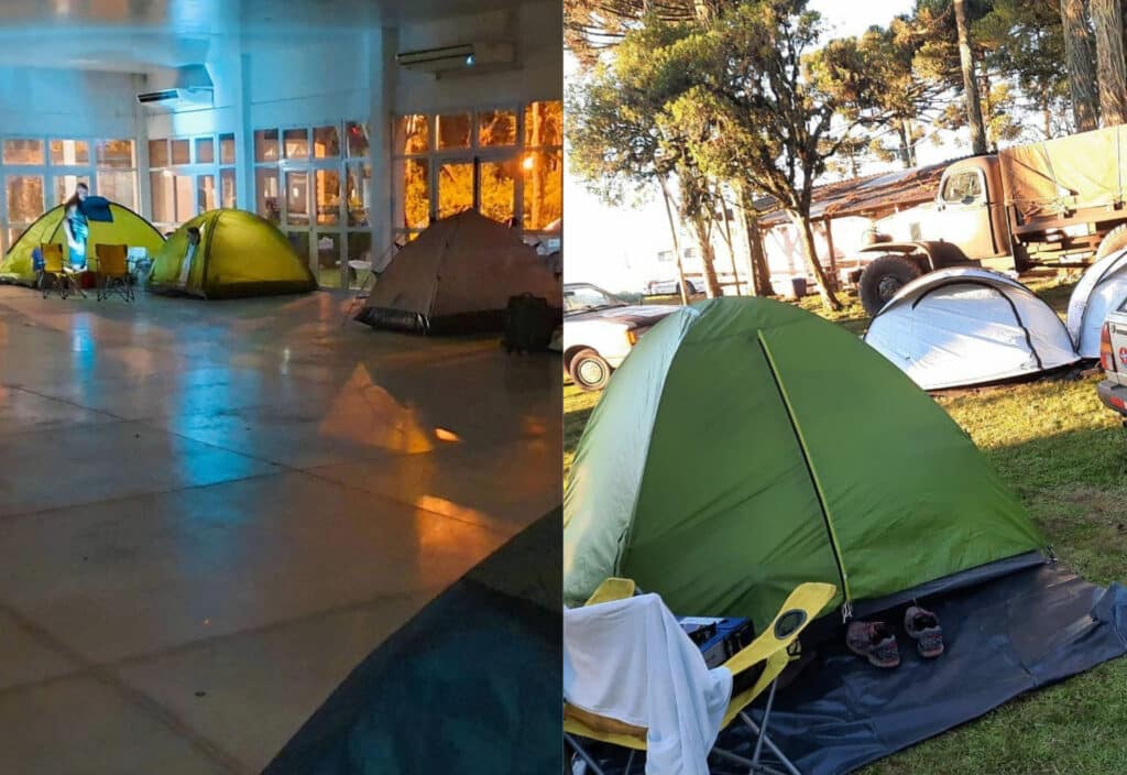 Os pernoites são em acampamentos, geralmente em campo de futebol ou ginásio de esporte reservados previamente com as prefeituras.